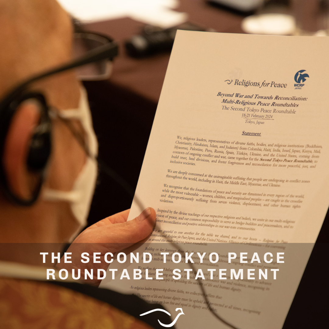 Religions for Peace International and Religions for Peace Japan, in partnership with the United Nations Alliance of Civilizations (UNAOC), concluded the second “Beyond War and Toward Reconciliation: Multi-Religious Peace Roundtables” which took place from 19-21 February 2024, in Tokyo, Japan. The Second Tokyo Peace Roundtable concluded with the Beyond War and Towards Reconciliation: Multi-Religious Peace Roundtables Statement that made commitments “to continue to pray and work multi-religiously towards a culture of peace that advances shared well-being, grounded in respect for the sanctity of life and human dignity.”