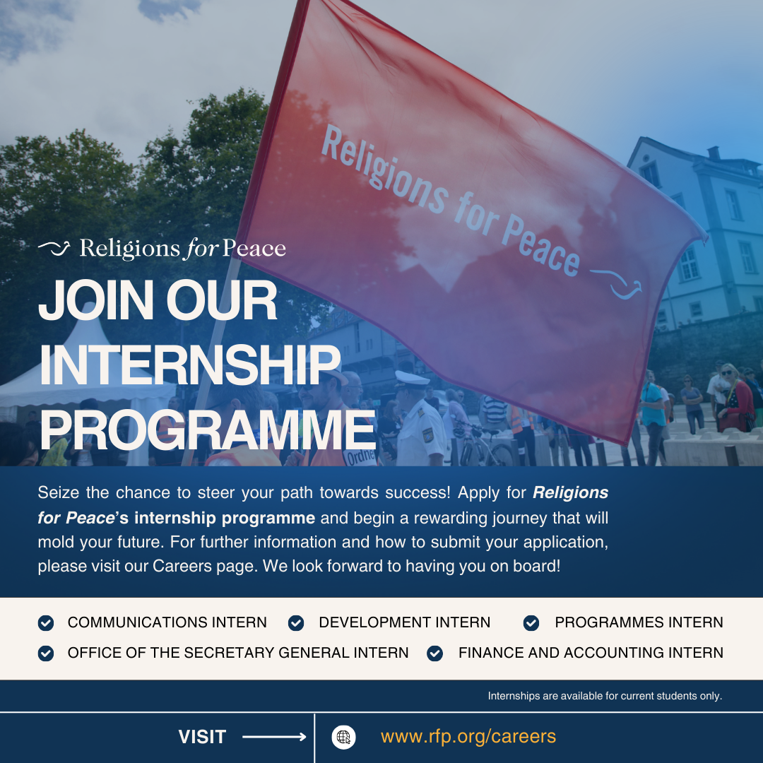 Religions for Peace is pleased to announce it is now accepting applications for its Fall 2024 Internship Programme. Available internships include: Communications Internship, Development Internship, Programmes Internship, Office of the Secretary General Internship, and Finance and Accounting Internship.