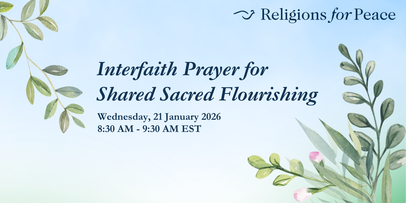 Religions for Peace is pleased to invite all to participate in the Interfaith Prayer for Shared Sacred Flourishing. This virtual gathering will take place Wednesday, 21 January 2026, from 8:30AM – 9:30AM EST. Register here.