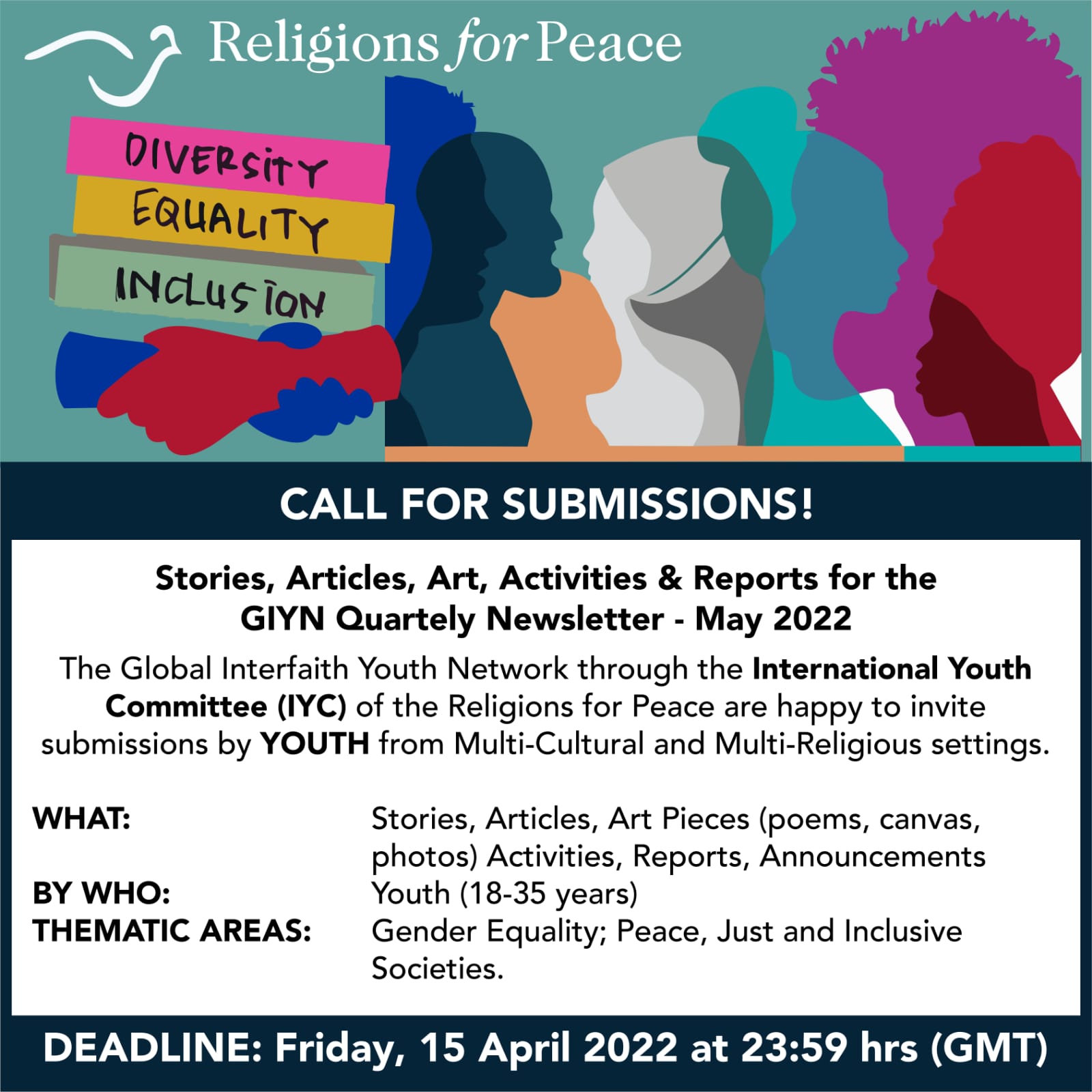 Here’s a unique opportunity for your activities to be highlighted and featured in the Global Interfaith Youth Network’s Quarterly Newsletter, scheduled for publication in May 2022.