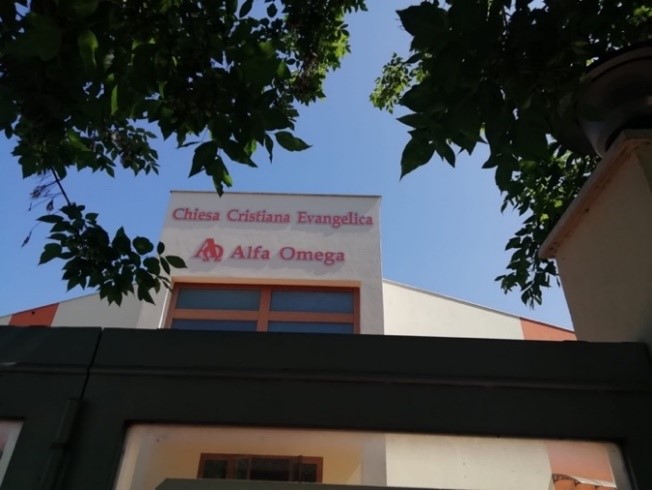 Figure 4: Alfa Omega Church, Rome, Italy. At the time of research, the church was sharing its spaces with an evangelical Italian community, a Romanian community, an Ethiopian/Eritrean community, and a Ukrainian community. Photo by the author.