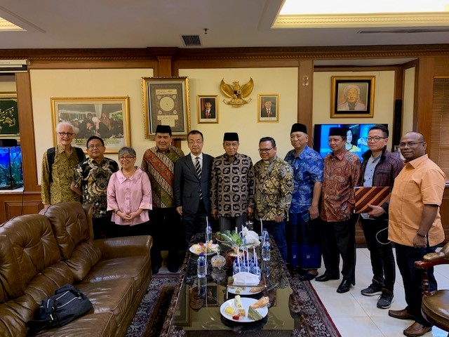 (Jakarta, Indonesia) A 12-member delegation consisting of senior Buddhist, Christian, Muslim and Hindu leaders from Myanmar has travelled to Indonesia for a historic visit facilitated by Religions for Peace (RfP)International at the invitation of Ministry of Foreign Affairs of Indonesia. The delegation met with H.E. Vice President Jusuf Kalla as well as leaders of the Interreligious Council of Indonesia-RfP, consisting of Indonesian Ulama Council, Nahdlatul Ulama, Muhammadiyah, Catholic Bishops Conference, Communion of Churches and Hindu, Buddhist and Confucian Associations.