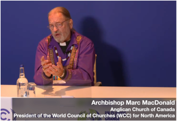 Archbishop Marc MacDonald of the Anglican Church of Canada, President of the World Council of Churches (WCC) for North America, noted: “An estimated 80% of the biodiversity of this planet is under the oversight, protocols and the life of indigenous people […] There is no livable future for this planet that does not address the rights of indigenous peoples in a way that has not happened in modern times. The way of life that we will need in order to have a livable planet is also found within indigenous life and philosophy […] so it is absolutely critical to understand that indigenous people and their life stand in a prophetic relationship with humanities future. Let us listen, let us take heed, let us understand, for in this we will find life.”
