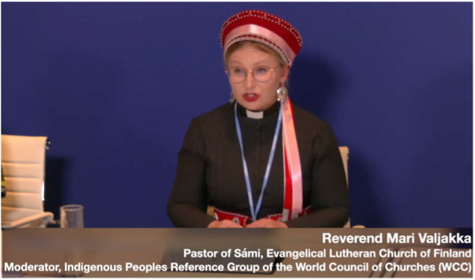 Reverend Mari Valjakka, Pastor of Sámi at the Evangelical Lutheran Church of Finland and Moderator of the Indigenous Peoples Reference Group of the World Council of Churches (WCC), highlighted that “our land is sacred to us, it gives us life and shelter, it is our home and our church. We have a connection to the land and wisdom to share, but our knowledge has been devalued. We think that indigenous perspectives are crucial not only for addressing the climate emergency but also for navigating the way forward to a hopeful post-COVID, post-growth and post-fossil-fuel future.”