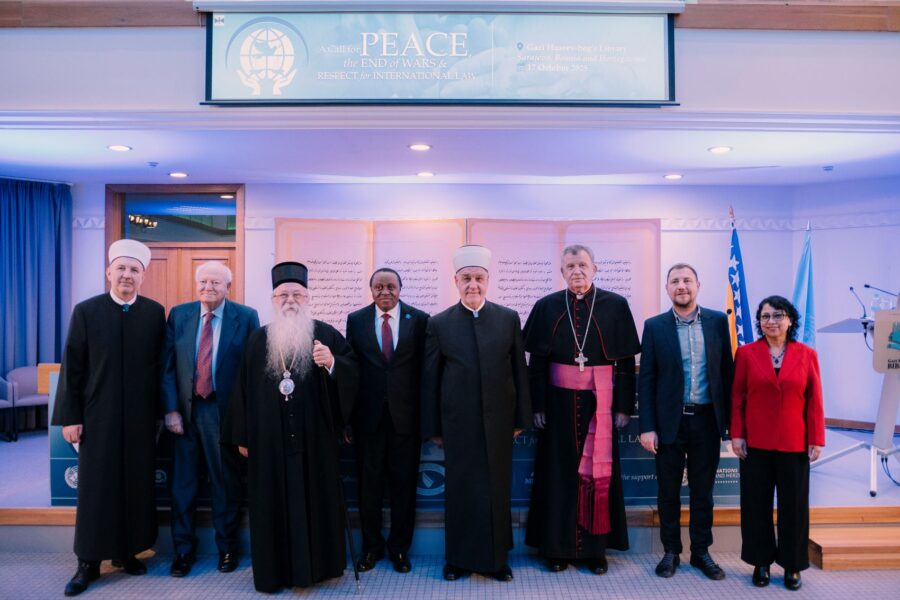 The second chapter of “A Call for Peace, the End of Wars and Respect for International Law”, took place in Sarajevo on 16–18 October 2025. An initiative of the United Nations Alliance of Civilizations (UNAOC) and Religions for Peace, the Sarajevo Call for Peace is organized in collaboration with the Ministry of Foreign Affairs of Bosnia and Herzegovina, the City of Sarajevo, the Interreligious Council of Bosnia and Herzegovina, and with the support of the Office of the United Nations Resident Coordinator in Bosnia and Herzegovina.