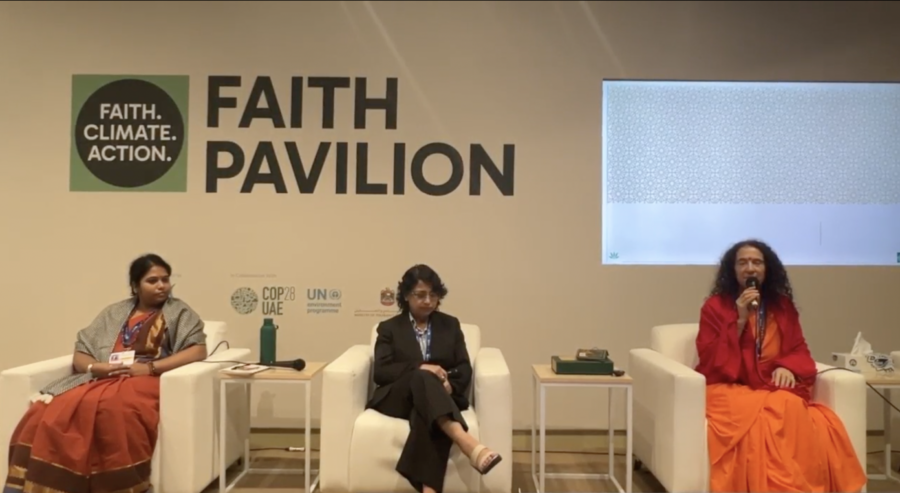 When asked about her experience of how women of faith and their rights are disproportionately affected by the climate crisis and what can be done to mitigate and reverse it, Dr. Sadhvi Bhagawati Saraswati, Co-President, Religions for Peace; Secretary General of Global Interfaith WASH Alliance, explained her observation of the way in which women in the Himalayas are experiencing diminishing resources, making their roles in the home much more difficult. Dr. Sadhvi also explained how climate crisis-induced economic hardships are leading to a rise in gender-based violence and illustrated the intersectionality of climate and women’s issues by explaining the effects of climate change on child marriages.